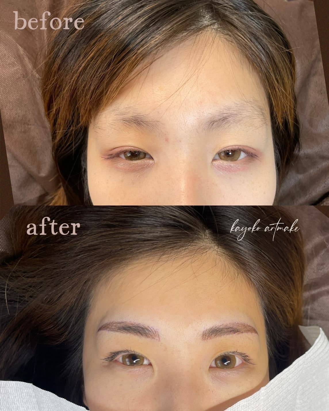 施術直後は濃く見えますが1〜2週間かけて自然な色味に落ち着いていきます。